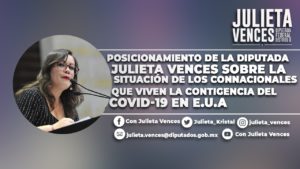 POSICIONAMIENTO DE LA PRESIDENTA DE LA COMISIÓN DE ASUNTOS MIGRATORIOS JULIETA KRISTAL VENCES VALENCIA SOBRE LA SITUACIÓN DE LOS CONNACIONALES QUE VIVEN LA CONTIGENCIA DEL COVID-19 EN ESTADOS UNIDOS. 14 abril, 2020 Leer más »